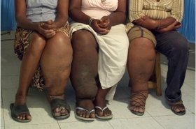 ![]() This picture shows three women from Haiti with lymphatic swelling, noticeable only on one leg – linked to a physical performance conflict of “not being able to run” (fast enough). In Haiti, 80% of the population has the condition. In Port-au-Prince the “disease” was unknown until the earthquake in 2010!
