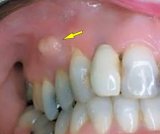 A large growth is usually diagnosed as an oral cancer (compare with “oral cancer” related to the mouth surface mucosa) or as a “glandular tumor” if it involves the salivary glands.