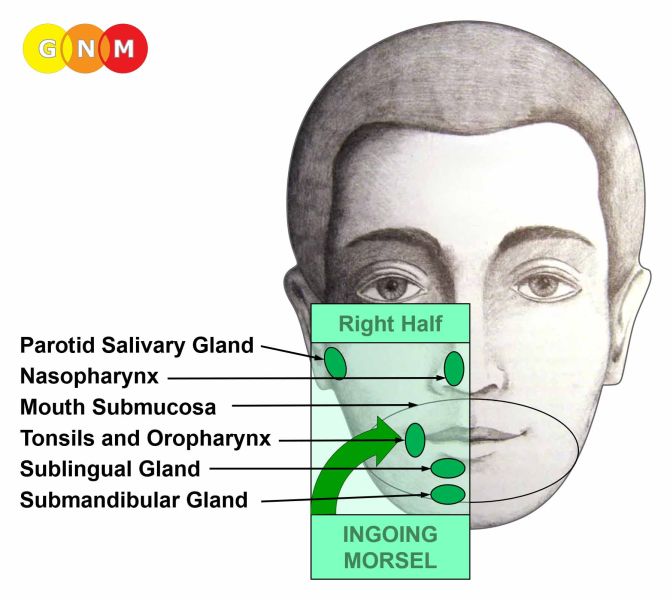 BIOLOGICAL CONFLICT: The biological conflict linked to the submucosa of the mouth and pharynx, including the lips, gums, palate, tongue, salivary glands, tonsils, and throat is a “morsel conflict” (compare with “morsel conflict” related to the stomach, duodenum, pancreas gland, small intestine, colon, and thyroid gland).